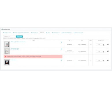 Um Probleme zu vermeiden, kümmert sich das Modul auch um die Prüfung auf Duplikate (gleicher EAN13-Code) und für jedes Duplikat, das Sie haben: