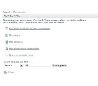 Dieses Modul ermöglicht es Ihnen, erzwingen oder nicht, den Kunden, ihre MwSt-Nummer eingeben oder bei der Registrierung für Kunden Dejas inscits. Sobald die Mehrwertsteuer-Nummer angegeben (und gültigen) kann der Kunde chnage Gruppe nach deren Land der automatisch oder manuell.