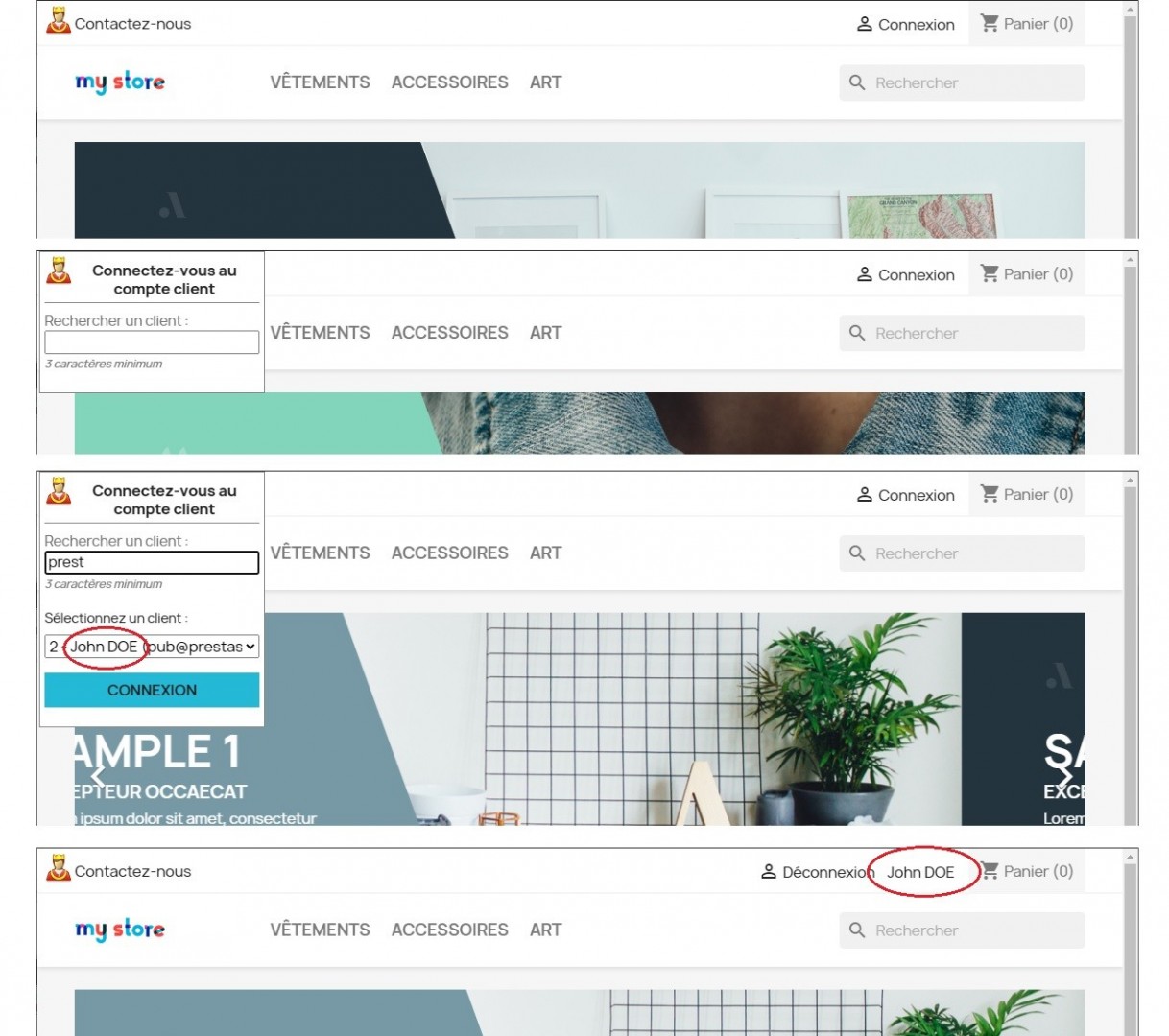 Mit diesem Modul können Sie ganz einfach eine Verbindung zum Kundenkonto herstellen, ohne nach seinem Passwort zu fragen. Die Verbindung kann vom Backoffice, aber auch vom Frontoffice aus hergestellt werden.