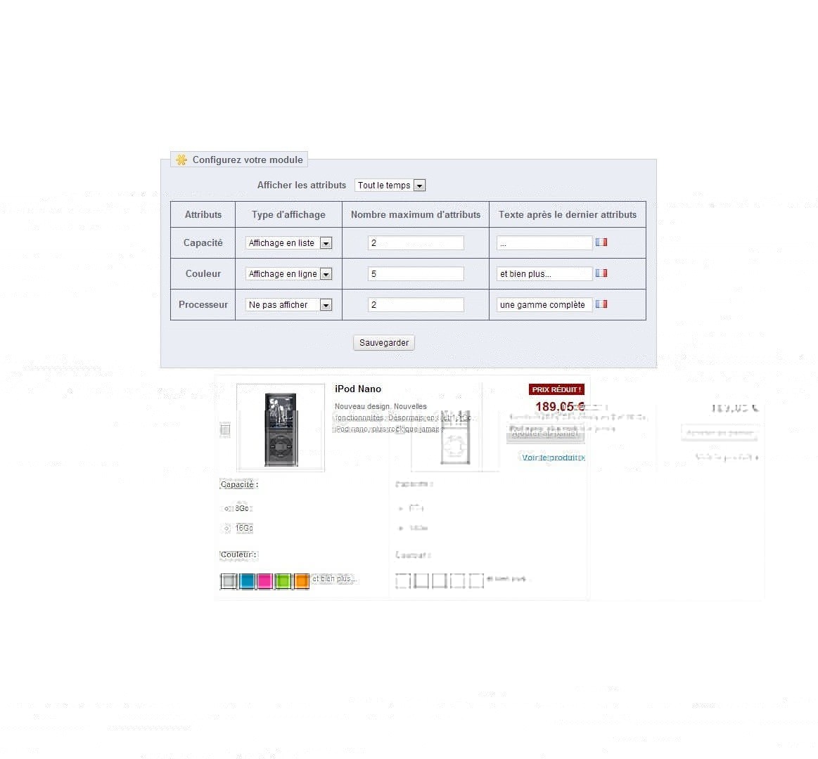 This Prestashop module displays the attributes on the pages displaying the lists of products in the overview of the product: