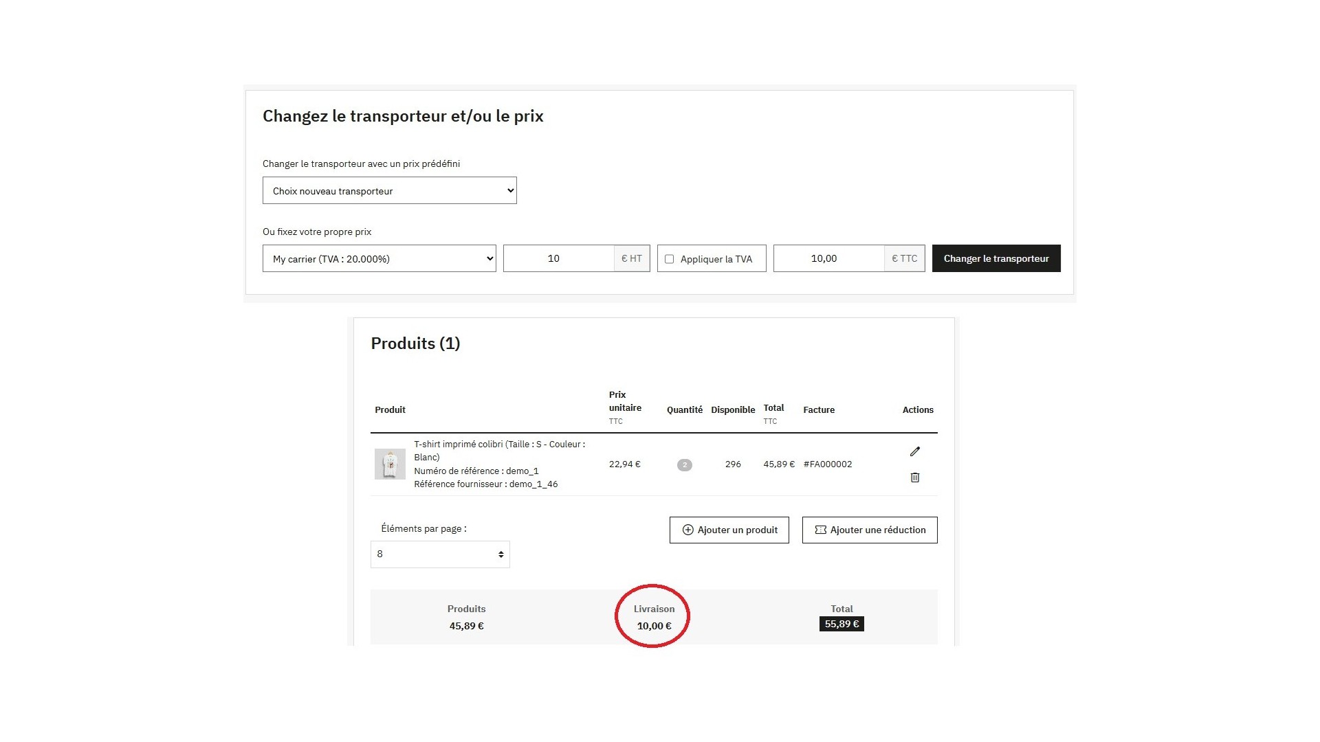 Ce module permet de changer depuis le back office le transporteur et de modifier le coût de la livraison.